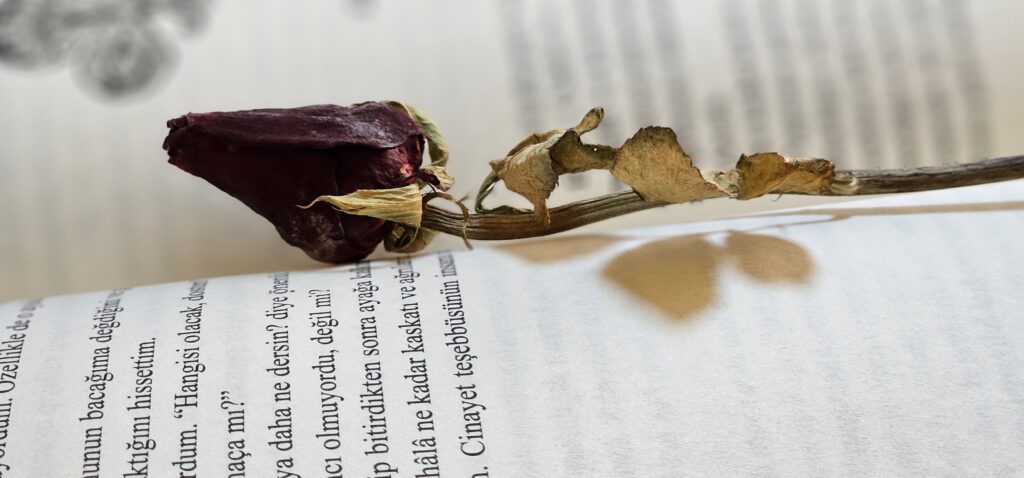 Ve kitap kapatılırken sayfa ortasına bırakılan gül…